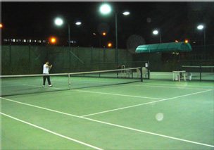 在基础建设完工以后,根据先前的一些预埋设施,安装球场四周的挡网和灯柱,并尽可能地安排建造一面网球墙,以为练习之便。